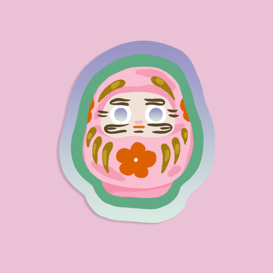 Pink Daruma Holographic Sticker